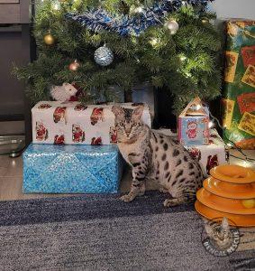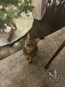 Loki is a very active 1 year and 3 month’s old male brown marbled Bengal cat with lots of personality. He is very chatty and loves to climb anything he can. He has four cat trees available to him but loves to climb up the stair railing as well. He loves playing with wand toys, cat nip toys and movement toys.
